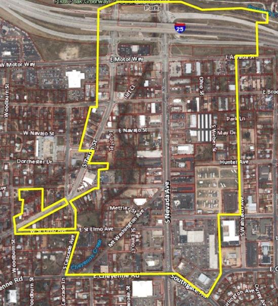 Natural features including parks, creeks and trails will be improved and maintained so that they are a true amenity rather than an obstacle.  Efforts will be made to provide a diversity of uses and enhance the streetscape environment to attract business and improve the quality of life along South Nevada and South Tejon Streets.